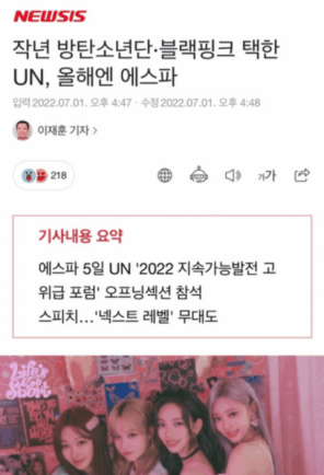 SM, neden her zaman medya oyunu yapıyor? Newsis: “Geçen yıl BTS ve BLACKPINK’i seçen BM, bu yıl aespa’yı seçti” BTS, tüm dünya liderlerinin konuşmalarını yapmak üzere yeniden bir araya