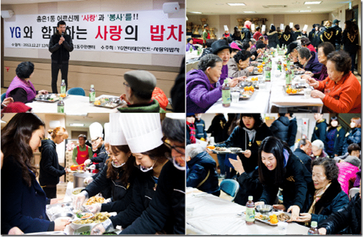 YG Entertainment Kore’nin en büyük şirketlerinden biridir ve şirketin kendi adı altında kafeteryası bulunuyor.Kafeterya yalnız yaşayan yaşlılar için hizmet yaptı.