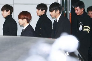Şaşırtıcı olmayacak şekilde, Super Junior üyeleri mevcut programlarını iptal ettiler. Bugün Super Junior üyeleri; HeeChul, HanGeng, Kang In, ShinDong, SungMin, EunHyuk, DongHae, SiWon, RyeoWook ve KyuHyun Leeteuk’un kaybı için onunla birlikte yas tuttular. Ye Sung askerlik hizmeti yüzünde cenaze törenin de bulunamadı. Diğer eğlence işletmelerinden 2AM’in Changmin’i, Kangta, Kang So Ra, Tae Jin Ah, Shin Dong Yup ve Kim Byung Man de Leeteuk’u bugün de yalnız bırakmadılar. B2ST’in Yoseob dedi ki , ” gerçekten şok oldum.Umarım Leeteuk kısa süre de gücünü toplar.” Şarkıcı Son Jin Young dedi iki, ” Artık üçü birlikte kız kardeşi (Park In Young) ve Leeteuk cennetten izleyecekler.”