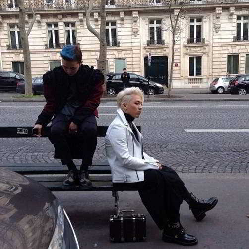 Taeyang resmi, “Paris’te Koreliler ” yazarak paylaştı. Resimde , G -Dragon’un saçının yarısı mavi ve çok şık görünüyor. Taeyang sarışın fohawk saçları ve spor tarzıyla bankta oturuyor.