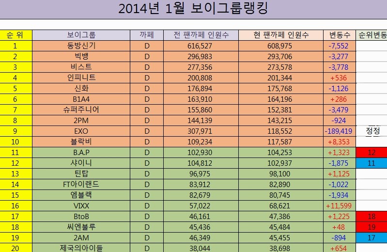 15. MBLAQ / 82,679 / 80,745 / -1,934