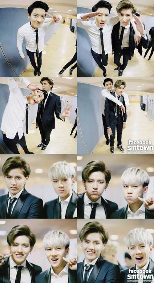 Resimlerde, Chanyeol ve Kris bir bekleme odasında gibi görünüyor ayrıca kameraya ”Golden Disk Awards.” nerede gibi yapıyor.