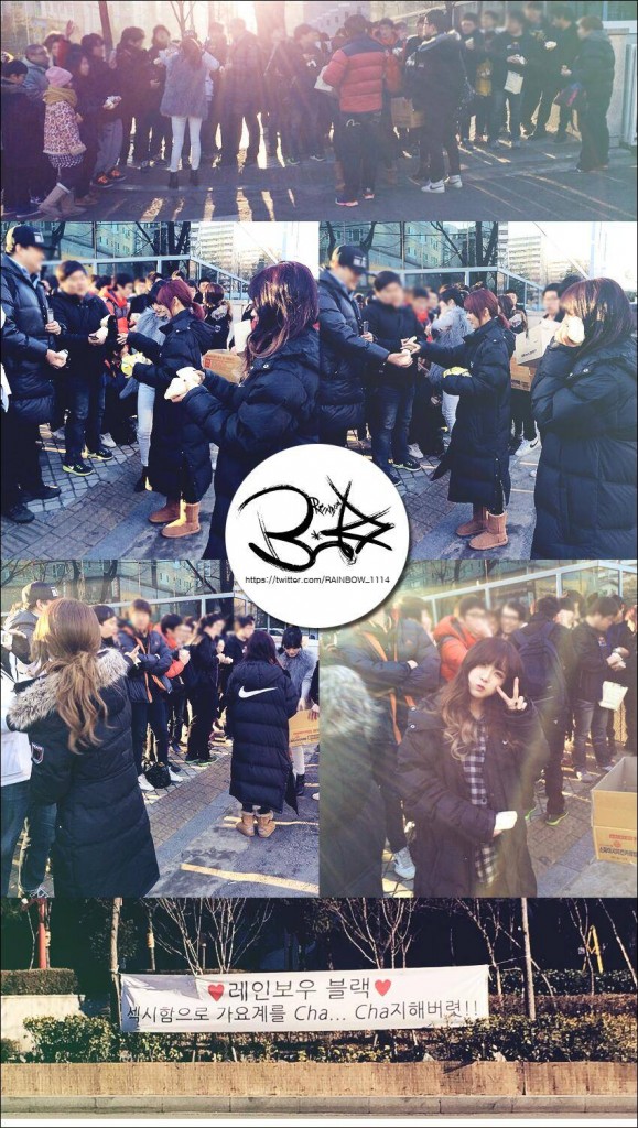 Kızlar yoğun bir hafta sonu geçirdi.25 Ocak’ta kızlar MBC kanalının ‘Show! Music Core’ programı kaydındaydı ve sonraki gün SBS kanalının ‘Inkigayo’ programının çekimlerindeydiler.Ancak hayranlardan en az 50 kişi onları teselli etmek için bütün gece Rainbow BLAXX ile kaldı.