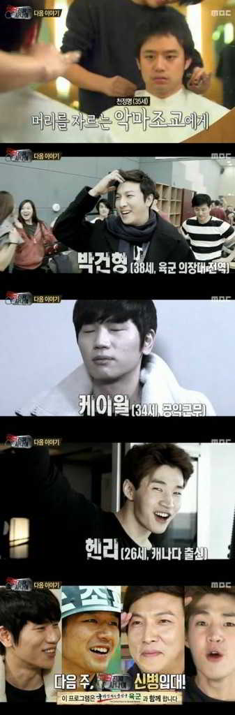Dört erkek MBC’nin yeni eğlence programının kadrosuna katılarak gelecek haftaki bölümün çekimlerine katıldı. Yeni üyeler K.Will, Chun Jung Myung, Super Junior, Henry ve Park Gun Hyung olacaktır. Kaçınılmaz askerlikle karşı karşıya kalan dört yeni asker ve K. Will kız hayranlarına imza verirken kız grupların sorularına, Henry ateşli silahlar satın alacağını söyledi! (kişisel ateşli silah Güney Kore’de yasa dışıdır.)
