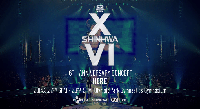 10 Şubat tarihinde Shinhwa Company resmi youtube hesabı üzerinden grubun vereceği “HERE” isimli 16. kuruluş yıl dönümü konserinin tanıtım videosunu yayınladı. Shinhwa 22 Mart tarihinde Kore saatiyle 18.00’de, 23 Mart tarihinde ise 17.00’de Olimpik Park Jimnastik Salonunda vereceği iki konser ile hayranlarına muhteşem anlar yaşatacak.