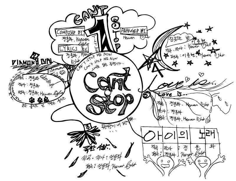 Yapılan açıklamada, “Daum Music aracılığıyla, CNBLUE’nun yeni albümü ‘Can’t Stop’un parça listesi hazır! Yong Hwa’nın yaptığı sanatsal parça tanıtımına bakalım! Bu arada, hangi şarkı sizin kulağınıza daha hitap eder?” denildi ve bununla birlikte lider Yong Hwa’nın çizmiş olduğu, sizin de yukarıda gördüğünüz, çalışma yayınlandı.