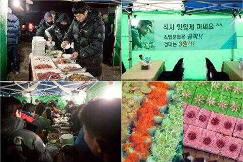 Kim Hyun Joong’un sadık hayranları “Inspiring Generation” dizisi setinde soğuk havaya rağmen canını dişine takıp çalışan yapım ekibine yemek ısmarlayarak desteğini gösterdi.