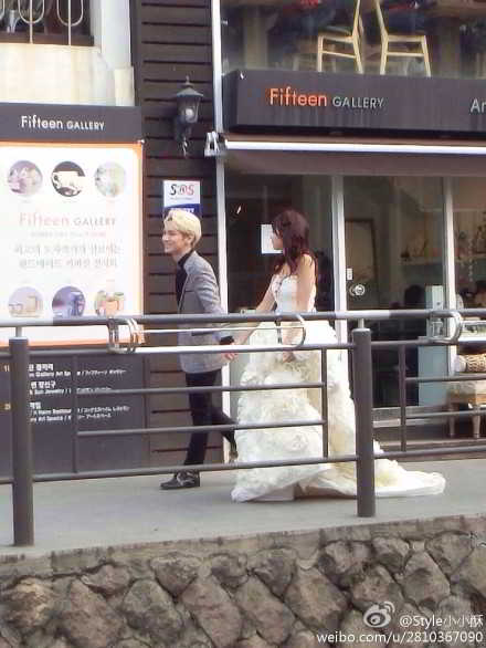 Gelinlikli Yagi ve takım elbise giyinmiş Key, Seul sokaklarında yürürken fanların kameralarına yakalandı.