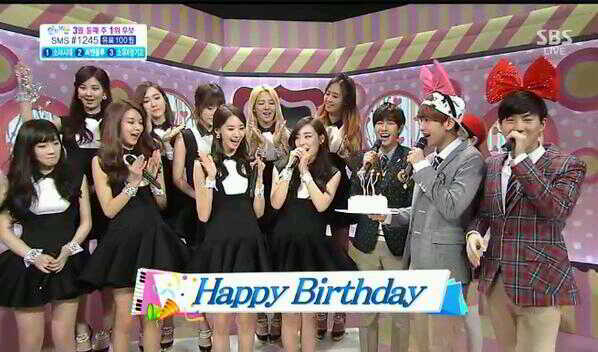 Kızlar 9 Mart 1989’da dünyaya gelen liderleri Taeyeon’un doğum günün bugün SBS Inkigayo programında kutlamışlar. Hatta bugünün özel sunucuları EXO’dan Baekhyun ve Suho Taeyeon’un doğum günü için “İyi Ki Doğdun” şarkısı söylemeyi de ihmal etmemişler.