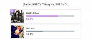 SNSD Tiffany ve 2NE1 CL gözleri ile iyi gülümseyen başlığı altında geçen tüm hafta mücadele etti, ancak oyların yüzde 65.9’unu alarak, SNSD üyesi kazanarak galip oldu.
