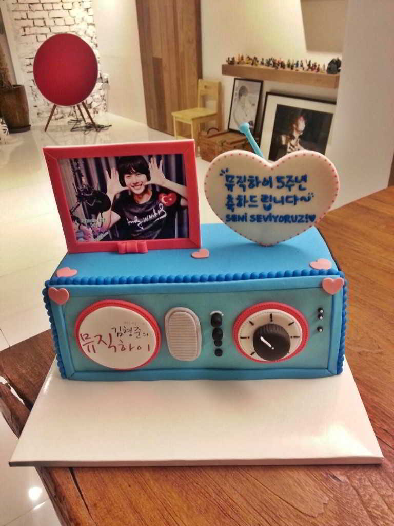Bu projenin fikri bana aitti.Daha doğrusu,sayfam – Kim Hyung Jun – 김형준 Turkey – ile birlikte; “ Music High “ın 5. yıldönümünü kutlamak için bir şeyler yapmalıyım diye düşündüm ve ortaya bu pasta çıktı.Pastanın dizaynını ben yaptım.Yani; tasarımından,Jun’a ulaştırılmasına-ödemesine-ayrıntılarına kadar her şey ile,bizzat ben ilgilendim.Bu zamana dek birçok projeye öncülük ettim ve bir sürü proje yaptık lakin en güzeli,geniş kapsamlı olanı bu oldu galiba.Bu vakte kadar yaptığımız hiçbir şeye; tam anlamı ile tepki vermeyen Baby’nin,bu kez tepki vermesini,hepimiz yürekten diledik ve bekliyorduk ama aradan uzun zaman geçmesi ile ümidimiz yok ile var arasında kalmıştı artık.Bu sebepten ötürü; günler sonra,ansızın verdiği reaksiyon ve ettiği teşekkür ile şaşkınlığımızı,hepimizi çıldırtan mutluluğumuzu kat kat katladı.Fazlası ile meşgul olduğu için; pastanın fotoğrafını o gün çekti,o fotoğrafı sakladı fakat,o fotoğrafı ya paylaşmayı unuttu ya da bir türlü fırsat bulamadı bu vakte kadar muhtemelen.Gerçekten ne diyeceğimi ve ne yapacağımı bilmiyorum ! Adeta bir rüya,hayal gibi geliyor tüm bunlar.Jun’un,pastayı çok beğendiğini bilmek ve bunun üstüne basarak,bize teşekkür etmesi harika ötesi.Sonunda sesimi-sesimizi duyduğunu fark etmek,Türk hayranlarından-bizden-sayfamdan haberdar olduğunu bir kez daha anlamak; eşsiz bir duygu ! “ Music High “da mesajımı okumasından sonra; pastamızdan bahsetmesi ile,hayatımdaki en büyük sevinçlerden ve şoklardan birisini daha yaşattı bana.Bu projede,süreçte bana destek olan herkese tekrar çok teşekkür ediyorum buradan.Ek olarak,beni hayal kırıklığına uğratmadığın,daha fazla bekletmediğin ve yüzümü düşürmediğin için sana sonsuz kere minnettarım Jjuni’m ! Sana da,gomawayo !!! ^_^ ♥ ♥ ♥ …