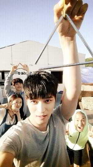 26 Mayıs’ta Hong Suk Chun, Twitter’a “Triangle’ Çekimleri. Gerçek bir üçgen bulduğu için çok heyecanlı olan Jaejoong, Siwan, Jin Hee ve Shorry ile. Sevimli” diye yazmış. Yorumla birlikte, oyuncu çekim arası verdikleri sırada oyuncu kadrosuyla birlikte gerçek bir üçgen ile fotoğraflarını eklemiş. Jaejoong elinde müzik aletini tutarken, Siwan ve Jin Hee parmaklarıyla üçgen şeklini yaparken görülüyorlar. Ayrıca, diğer üyelerden farklı olarak Shorry J ise açık yeşil kapşonlu bir sweatshirt giyerken iki eliyle barış işareti yaparken çekiliyor.