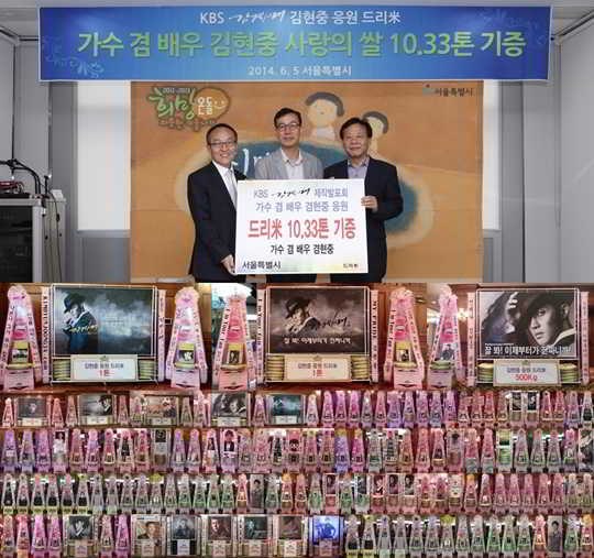 Ve yine Hyun Joong’un uluslar arası hayranları bundan 4 sene önce ‘Playful Kiss’ dizisinin çekimlerinin olduğu zamanlardan olan 26 Ağustos tarihinde 1.26 Ton pirinç bağışında bulunmuştu.Ve aynı zamanda Hyun’u çiçekler ile desteklediler.Ayrıca 2013 yılında ‘The Age Of Feeling’ ile Hyun Joong’un adı altında 26.75 Ton pirinç bağışlandı.