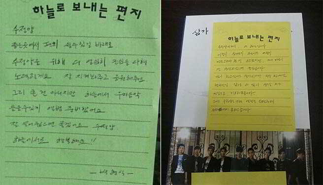 Güney Kore’de yaşanan korkunç gemi kazası Sewol Faciasın’da bir hayranlarının da kurban olduğunu duyan ZE:A’dan Hyung Sik o hayranı ve ailesi için kendi el yazısı ile bir paylaşımda bulundu.