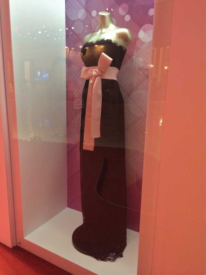 Cheon Song Yi’nin öldürülme sahnesinde giydiği Dolce and Gabbana kıyafeti. Maalesef ki, ünlü gümüş ayakkabıları sergide değil.