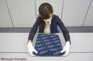 Bayan Personel:Onun havlusuna dokunmak için gittim.Çok heyecanlıydım.Saygılı olmak adına takım elbise giydim ve masayı dikkatle silerek havluyu koydum.Bir maske ve eldiven giyindim.Havludaki kırmızı daireli kısım onun öptüğü kısım.