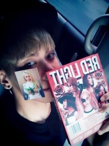 ”Bu müthiş çünkü f(x)’in imzalı ‘Red Light’ albümünü aldım! f(x) jjang! (En iyisi) ”