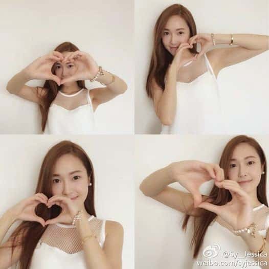 Güzel SNSD üyesi,Weibo hesabına ”Sen de bir kalp yapabilir misin? Ben görmek istiyorum.” yazdı.Fotoğraflarda, Jessica beyaz bir elbise giyiyor ve gülümseyerek çeşitli kalp işaretleri yapıyor.