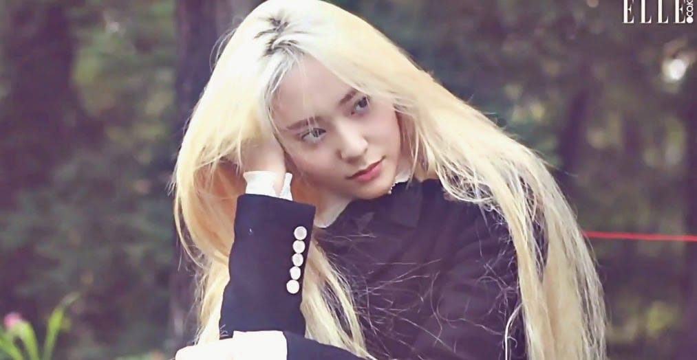 Krystal kamera için bir doğa perisi gibi bakıyor.Doğal ayarı ile birlikte Krystal’in büyüleyici görünümü ve platin uzun saçı eşleşiyor.