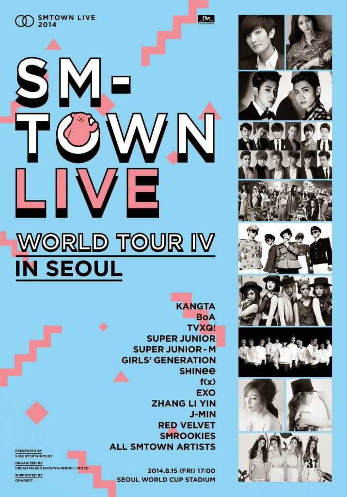 Bu arada,’SMTOWN LIVE WORLD TOUR IV in Seoul’ Seoul World Cup Stadı’nda 15 Ağustos’ta olacak ve Kangta, BoA, TVXQ!, Super Junior, Zhoumi, Henry, SNSD, SHINee, f(X), EXO, Zhang Li Yin, J-Min, Red Velvet, ve SMRookies dahil olmak üzere tüm SM sanatçıları katılacak.