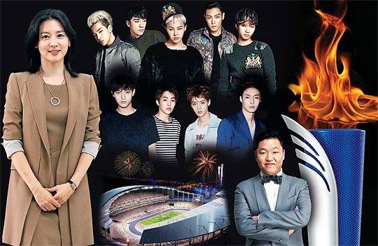 Tanıtım elçisi JYJ etkinliğin resmi şarkısını söyleyecek , rapçi Psy ve EXO, oyunların açılışını kutlayacak. Açılış ve kapanış törenlerinden sorumlu yönetmen Im Kwon Taek, Kore’nin benzersizliğini, özellikle pop kültürünün, Asya ve dünyanın diğer bölgelerinin genelini derinden kasıp kavurduğunu vurgulamak için çalışıyor.