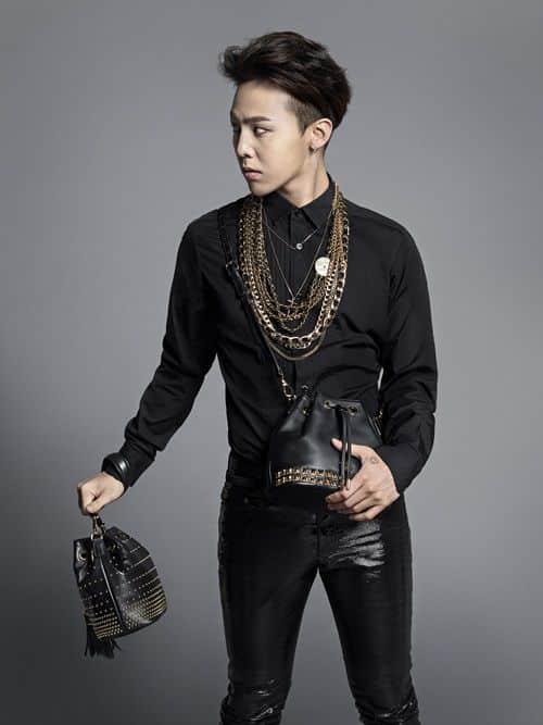G-Dragon, çantanın ana teması siyah ve altın renkleriyle, doğal karizması ve modacı yanları ile görünüyor.