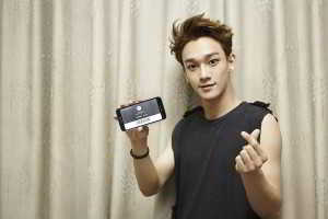 Chen ve Sehun telefonlarından Exo-L sayfasını göstererek poz verdi.