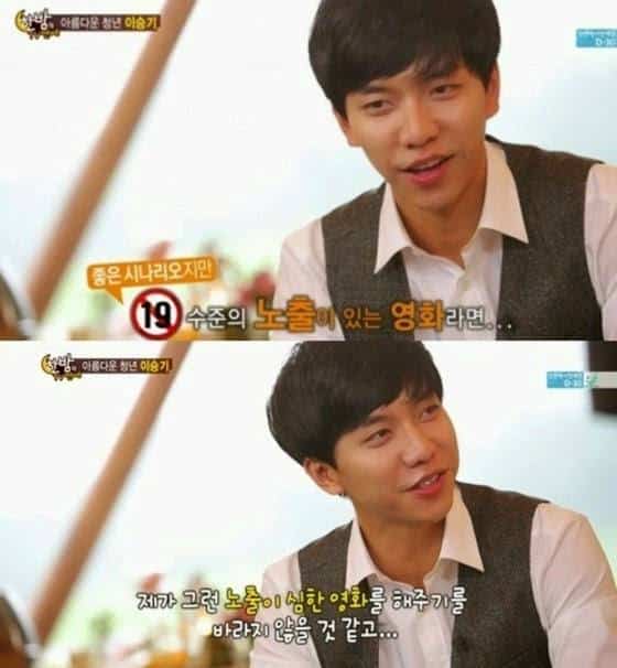 Muhabir sordu, “Çekimde bazı maruziyet sahneleri yapmak için teklif alırsan ne yapacaksın?” Lee Seung Gi, “Henüz bunu yapmak için hazır değilim sanırım.” şeklinde yorumladı.