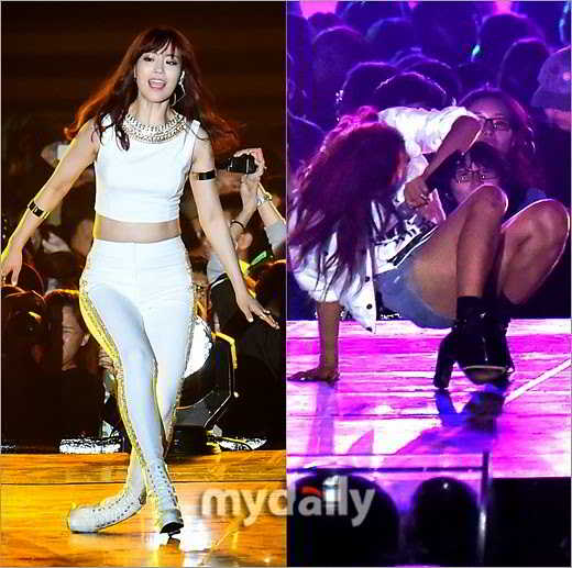 28 Eylül’de KARA Youngji ve 4Minute Jihyun ‘2014 Halyu Dream Festifal’ performansları sırasında düştü.