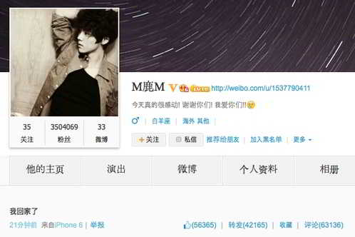 Şimdi de EXO-M’den Luhan fanları için hem Instagram hesabından hem de Weibo hesabından mesaj yayınladı.