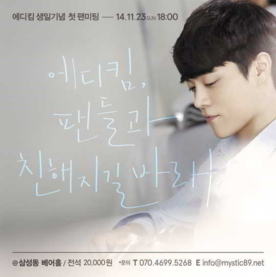 23 Kasım’da Eddy Kim Hoping to Get Closer to Fans (tercüme) Samsum-dong başlıklı ilk fan toplantısı başlatılacak.