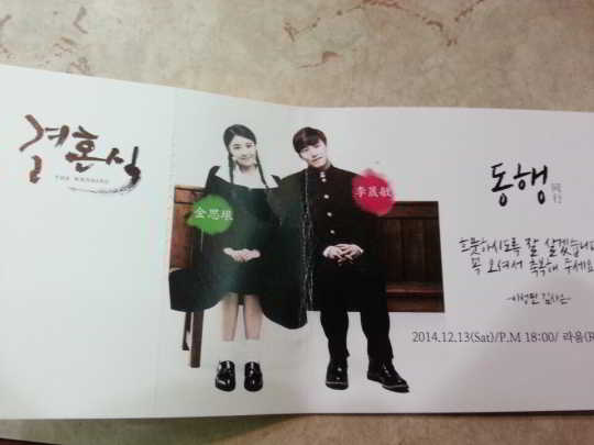 13 Kasım’da online bir topluluk sitesi çiftin yaklaşan düğünü için bir davetiye fotoğrafı yayınladı. Davetiyede, ”Millet…Bizler iyi ve hoşnut bir şekilde bir hayat süreceğiz. Lütfen düğünümüze gelin ve bizleri kutsayın.” yazıyor. Davetiye resminde ise çift retro lise kıyafetleri içinde oldukça sevimli görünüyorlar.