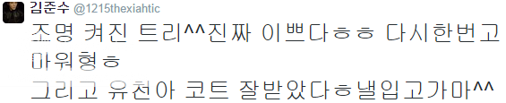 [Çeviri]Teşekkürler Yuchun!! Palto çok güzel. Bu gerçekten iyi kullanacağım!