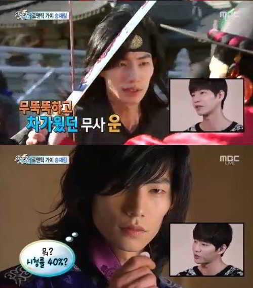 Song Jae Rim’le görüşen kişi onun kişiliğinin ilk büyük drama çalışması olan“The Moon That Embraces the Sun”daki karakterinden çok farklı olduğunu söyledi.Bunun üzerine o “Ben oynadığım ilk büyük rolü çok kaba bir adamdı ve her şeyin bu dramanın raitinglerde % 40’ın üzerineçıkması için olduğunu düşündüm.Bu yüzden bile daha fazla insan benim her zaman ciddi olduğumu düşündü”cevabını verdi.O daha sonra sözlerine”Ama ben’We Got Married’sayesinde bir sürü insanın bu düşüncesinin inceldiğini düşünüyorum.Bu yüzden bunun için mutluyum”diyerek ekleme yaptı.