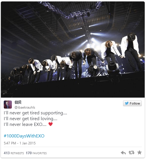 Dünya’nın her yerinden hayranları #1000DaysWithEXO başlık etkiketine yazdı ve bu etiket Twitter’da trend başlığına girdi.