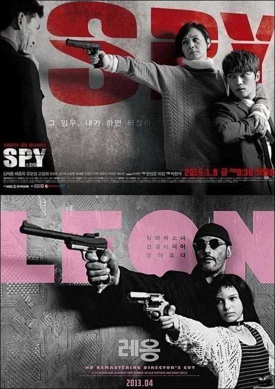 ‘Leon’ 1994 yılında sinema ekranlarına gelen ünlü bir Fransız filmi. 2013 Nisan’ında film sinemalarda yeni bir poster ile tekrar gösterildi ve ‘söylenilenlere göre SPY’ dizisinin afişi ile birbirlerine benziyor. Her iki posterde de karakterler siyah-beyaz renklerde olup dizi-filmin başlığı koyu ve renkli olarak yazılmış. ‘SPY’ afişinde ayrıca silahın doğrultulmuş olması ve iki karakterinde duruşu ‘Leon’daki ile benzemekte.