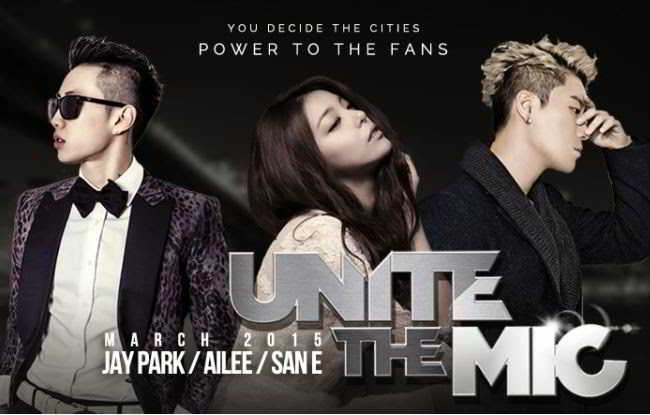 ‘Unite The Mic Tour’ da koreli şarkıcılar Ailee, San E, ve Jay Park üçlüsü yer alacak.Turu ziyaret edecek olan yerlerin belirlenmesi için bir oylama süreci vardı.%100 oya ulaşmayı başaran şehirleri aşağıdan görebilirsiniz:
