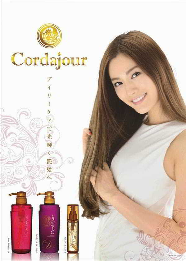O, posterlerde sağlıklı saçlara sahip olduğunu ve kadınsı cazibesini gösteriyor.