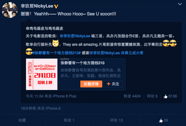 Bu weibo paylaşımına Nicky Lee; “Teşekkürler! Yeahhh~~~ Whooo Hooo~ Yakında görüşürüz!!!” yazarak yanıt verdi.