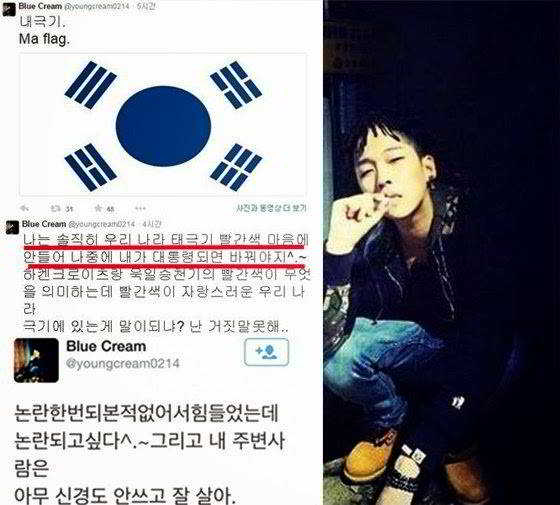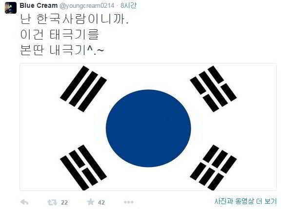 Daha sonra kırmızının olmadığı tamamen mavi bir Kore bayrağı paylaşarak şunları yazdı”Ben Koreliyim.Bu benim bayrağım.”