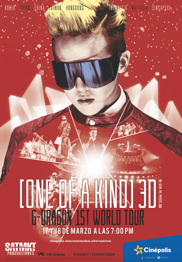G-Dragon 2013 1. Dünya Turu (One of a Kind 3D) adlı belgesel filmi Meksika’da Mexico City, Cancun, Puebla, Campece, Merida gibi şehirlerdeki Cinepolislerde 20 dalda yayınlanacak.