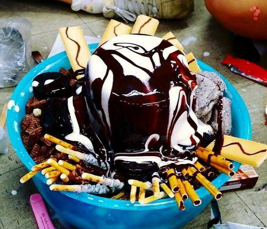 Kız öğrenciler abur cubur karışımlarını önce uzun uzun hazırlayıp sonra da yaptıkları karışımları paylaşarak hep beraber yiyorlar.