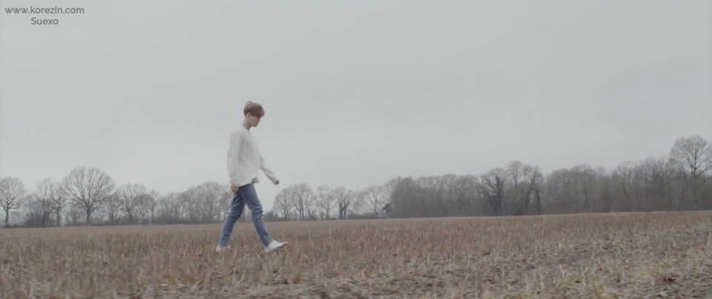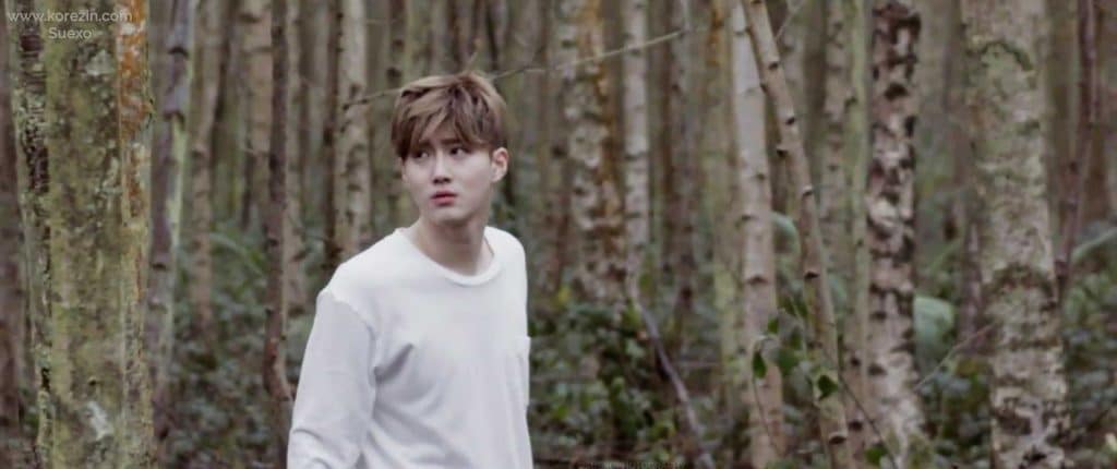 Daha sonra ilki kadar olmasa da yine kurak bir ormanda beliriyor Suho. Yüzündeki endişeli ve acı dolu ifadeyi görebiliyorsunuz. Tek tek kurumuş ağaçları inceliyor.