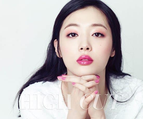 Sulli 16 Nisan tarihinde yayınlanan ‘High Cut’ dergisi aracılığıyla canlı renkler kullanarak dudak makyajını gösteriyor.