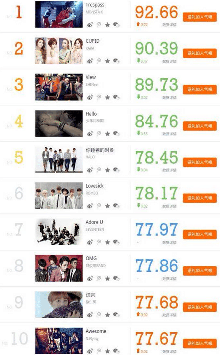 Şarkı Çin müzik listelerinde ilk sıralarda yer alıyor.