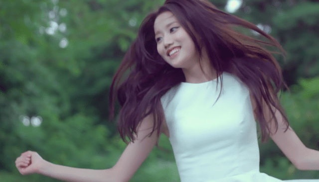 Aynı koreografi ile Naeun yemyeşil bir ormanlık alanda üzerinde beyaz elbisesi ile yukarıya doğru sıçrıyor.