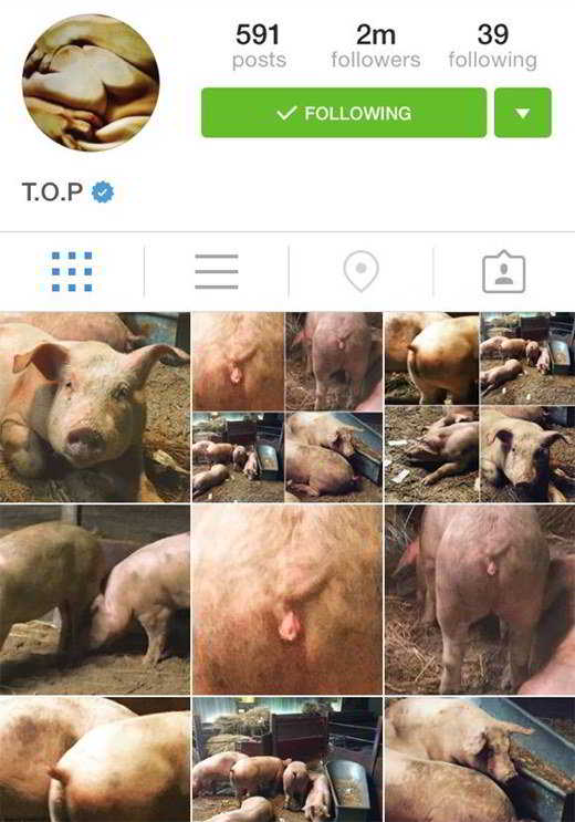 Domuzların birbiriyle birleştirilmiş halleri kısa zamanda tepki çekti ve T.O.P fotoğrafı hesabından kaldırdı.