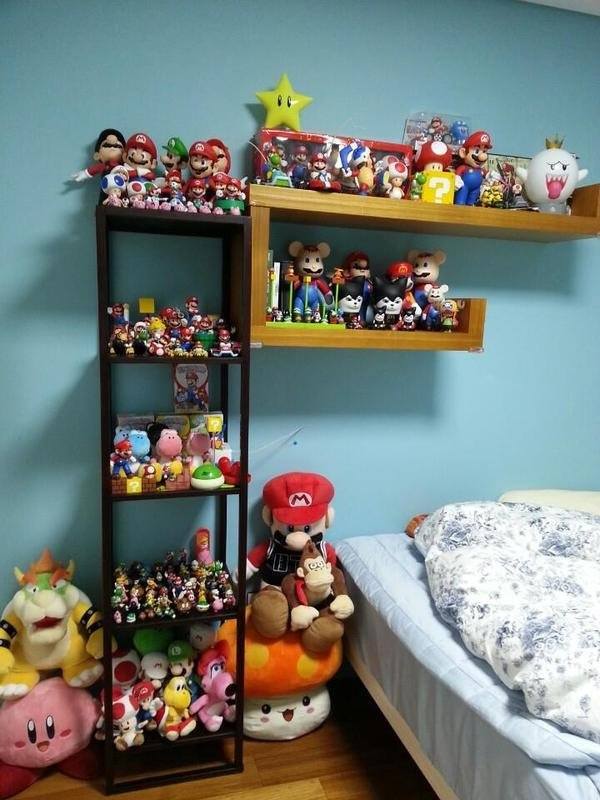 Aşağıdaki fotoğraf, Jin’in odasındaki Mario eşyaları koleksiyonundan.