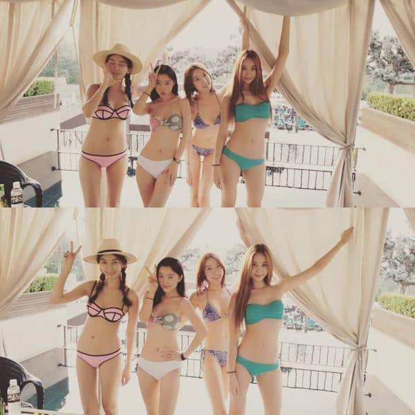 Fotoğrafta diğer arkadaşları ile bikinili poz verdikleri görülüyor.