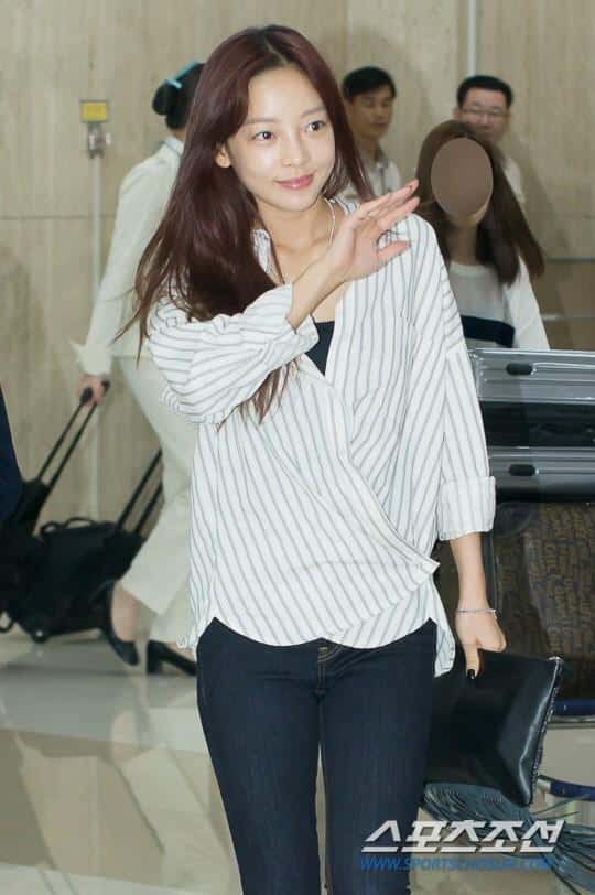 KARA’dan Youngji ve Hara parlak bir gülümseme ile havaalanın da hayranları selamlıyorum.